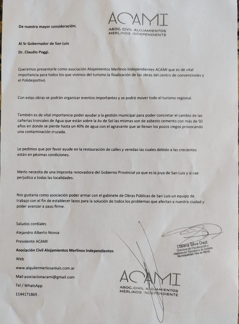 En el Día de Hoy 9/02/24 se presentó Nota Dirijida al Gobernador con temas relacionado a Infraestructura .