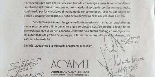 *Importante* Pedido a la Intendencia de Retrotraer el aumento del 70 %…