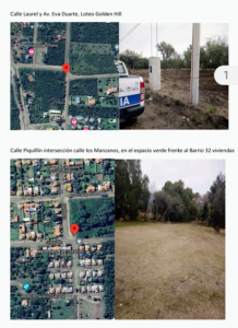 - Calle Piquillín intersección calle los Manzanos , en el espacio verde frente al barrio 32 Viviendas .