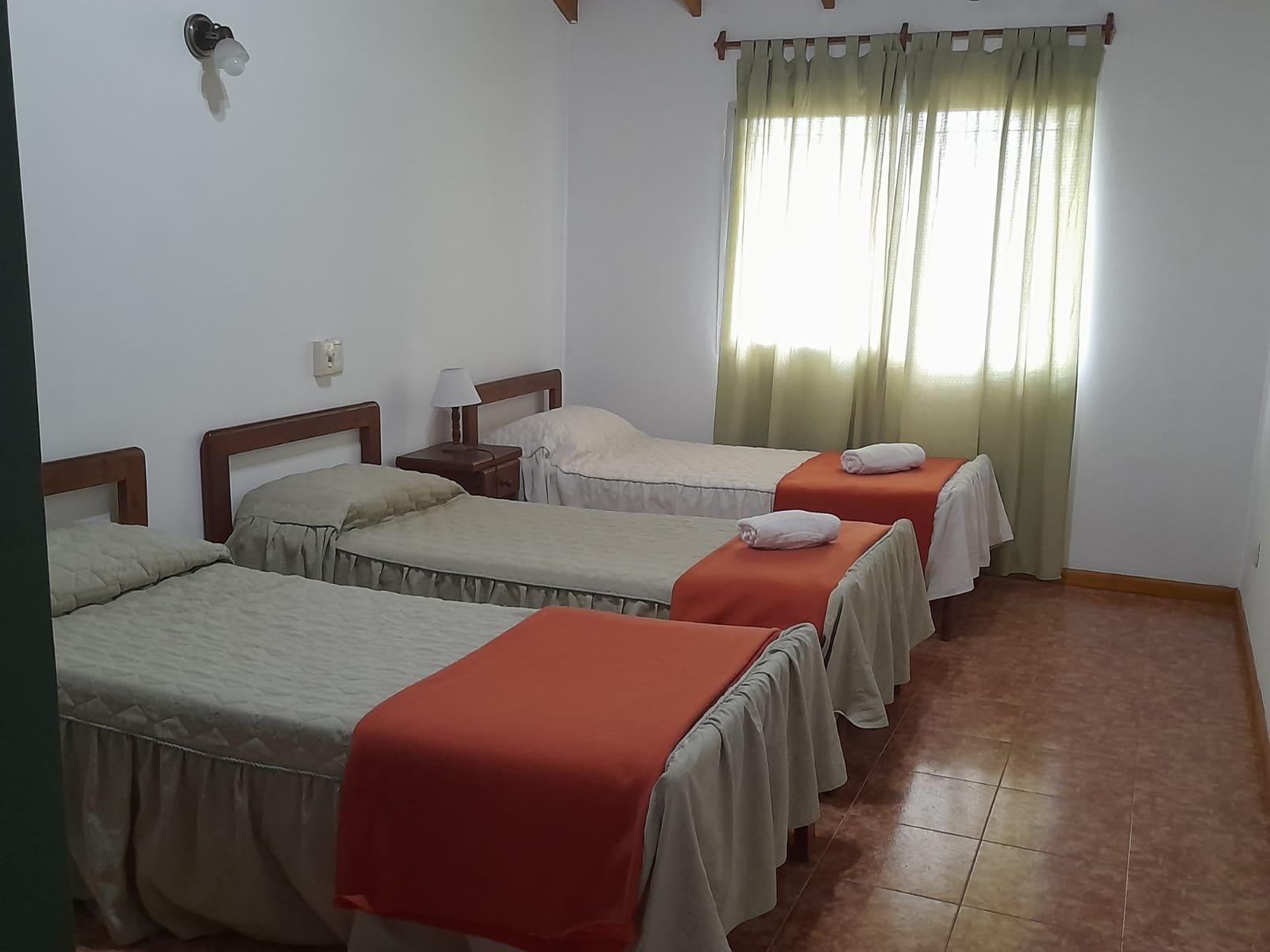 Nuestras cabañas son para 5 personas constan de 2 habitaciones: una en planta alta con 3 camas individuales y la 2da habitación en planta baja con cama matrimonial, baño y cocina comedor en planta baja.
