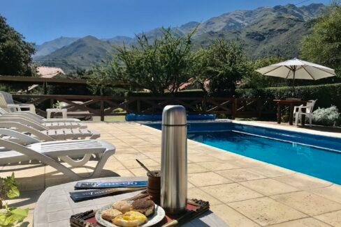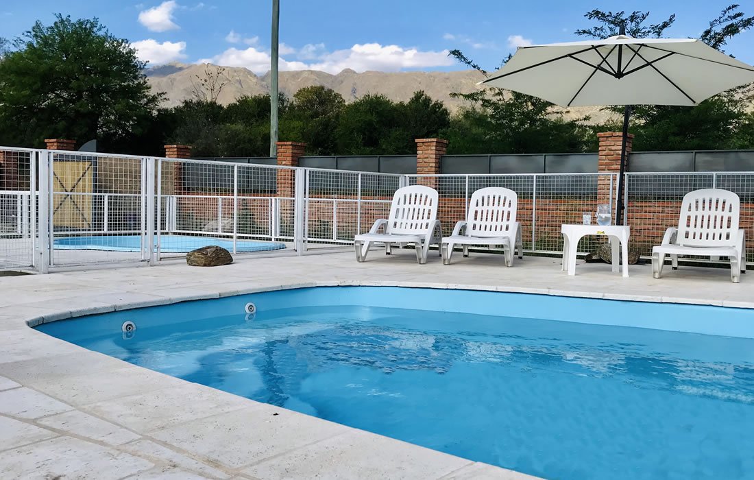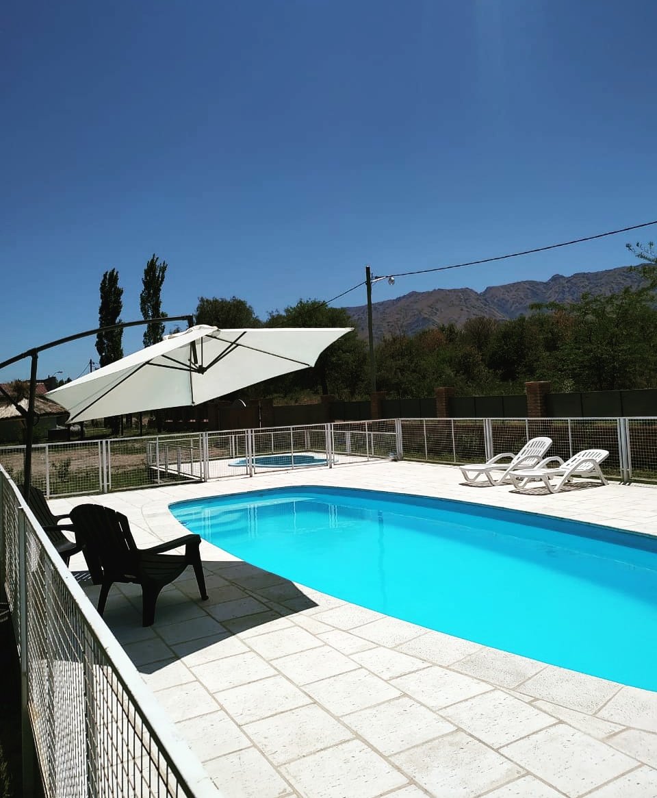 Cada cabaña cuenta con dos habitaciones, cocina y comedor amplios, baño, porche, smart tv, aire acondicionado, calefacción, parrilla, cochera, pileta. Capacidad: 3 a 5 personas. Los esperamos en Villa de Merlo, San Luis, a 5 cuadras del centro.