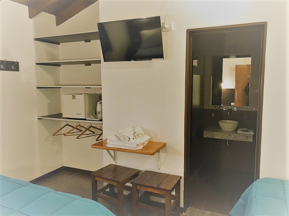 Contamos con 8 habitaciones matrimoniales, dobles e individuales exclusivamente para adultos. Están equipadas con aire acondiconado split frio-calor, televisores LED 32 pulgadas, sommiers de alta densidad, frigobar, secador de cabello y estacionamiento. El desayuno y estacionamiento esta incluido en todas las habitaciones.